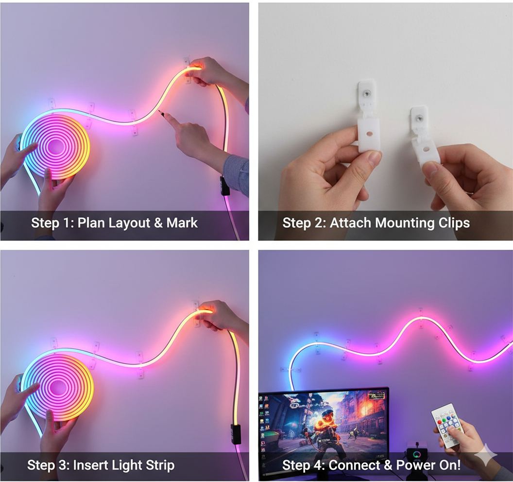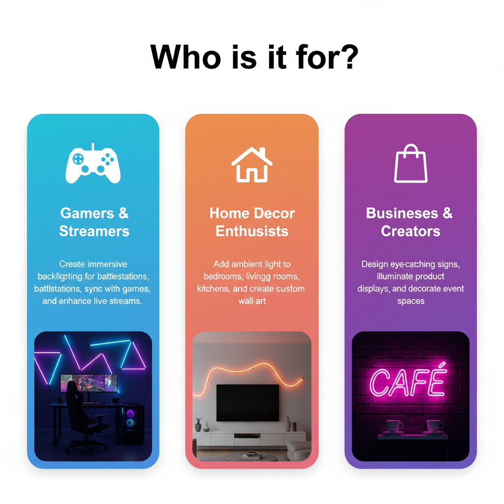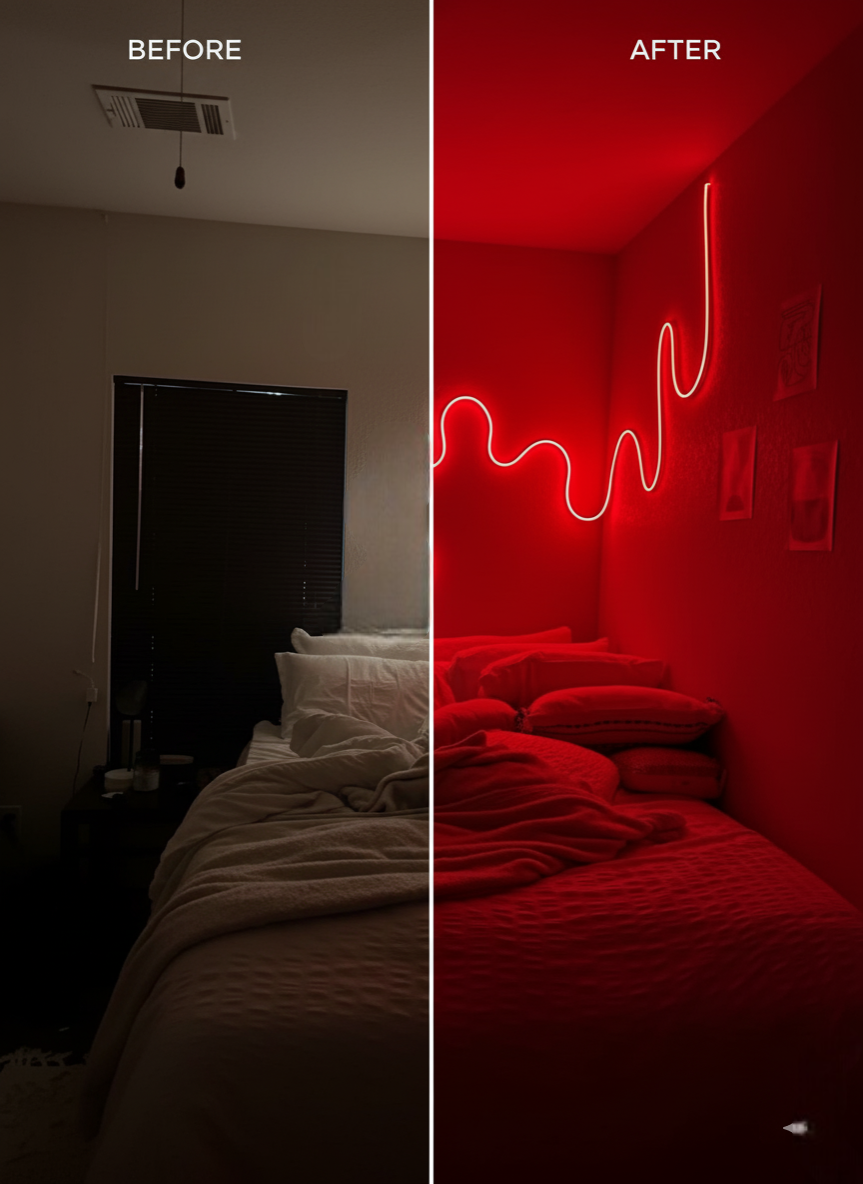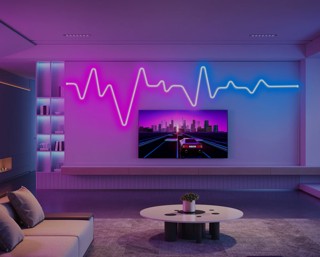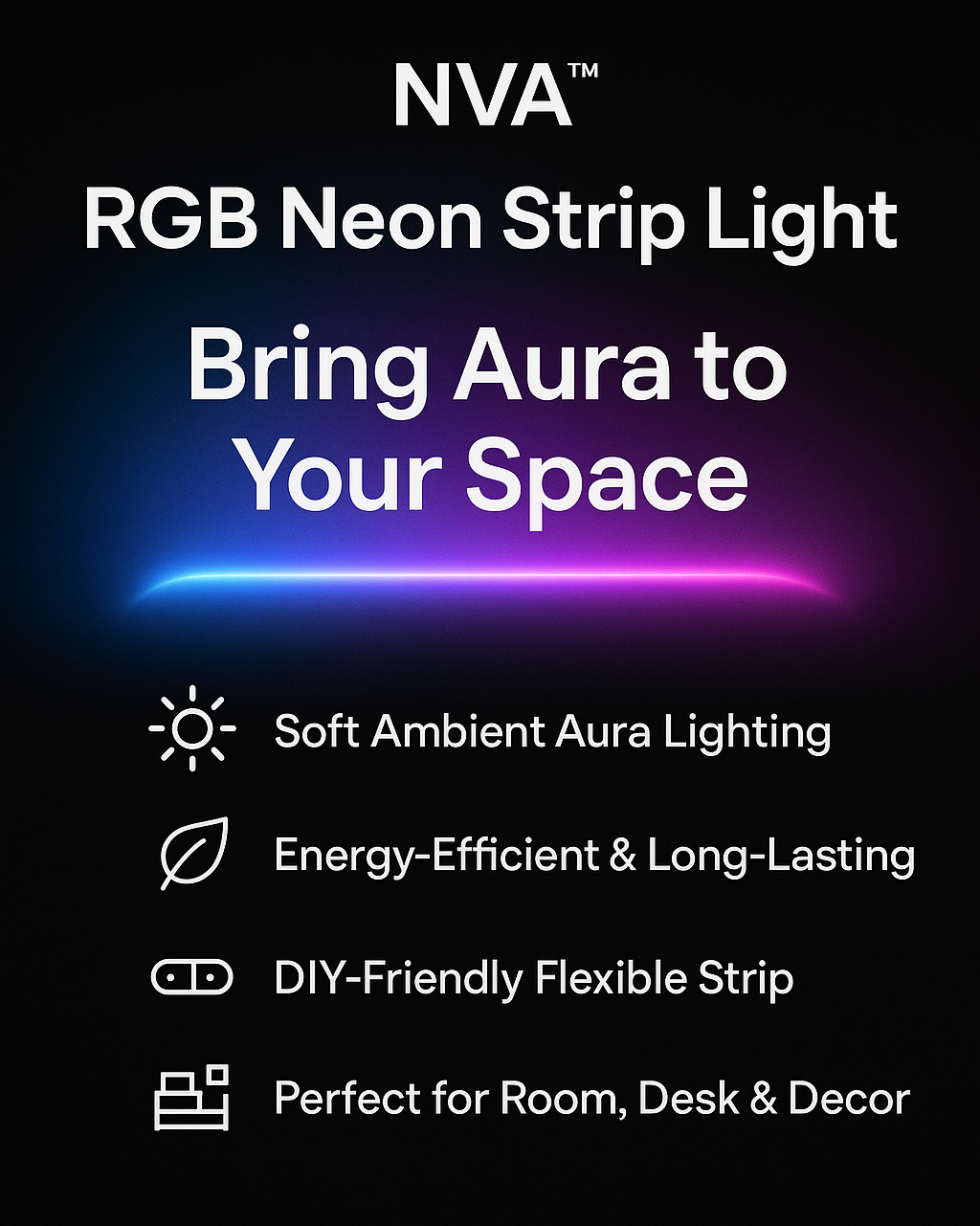 NVA RGB Neon Rope Lights are designed to completely transform your space with 16 million vibrant colors and 100+ dynamic lighting modes that suit any mood or moment. Withfull App Control, you can easily adjust brightness, colors, and effects right from your phone. The built-in music sync mic matches the lights to your favorite songs, creating a stunning beat-responsive atmosphere. Plus, the rope is flexible and bendable, allowing you to shape it into custom designs for your wall, desk, or ceiling. Whether itβs for a gaming setup, bedroom, studio, or cafΓ©, NVA Neon Lights give your space a modern, premium glow with endless possibilities.